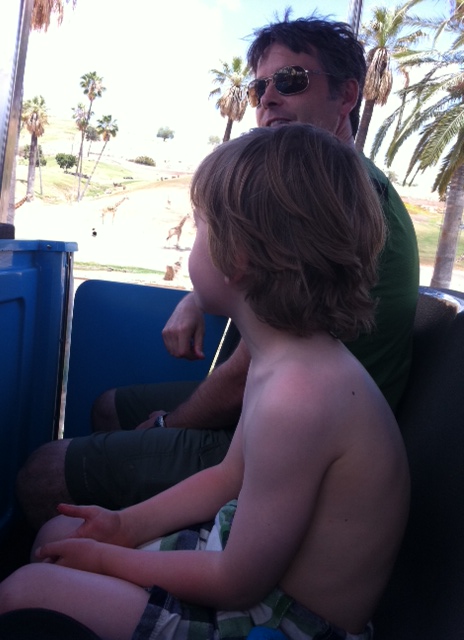 To say that Bennett can sometimes be difficult at the most inopportune times is an understatement. The kid excels at it. So there we were not three minutes in to our 30-minute tram safari when Avery and Bennett start fighting. More specifically, Bennett decides to repeatedly push Avery for no apparent reason. I separate them by sitting between them and then I try to distract Bennett by pointing out the rhinos and elephants and giraffes.